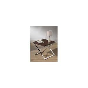 Premier Housewares Side Table with Dark Brown Wooden Table Top and Chrome Legs, Height 45 cm x Width 50 cm x Depth 50 cm2401442 Features: -TV table. -Geneva range. -Dark brown wood with square chrome tube frame.